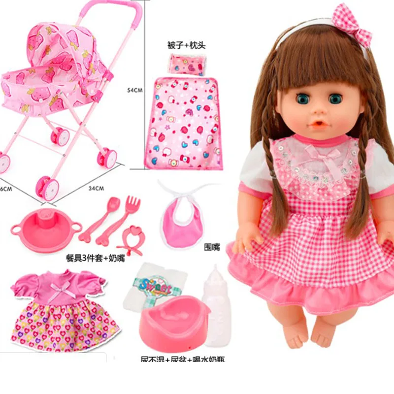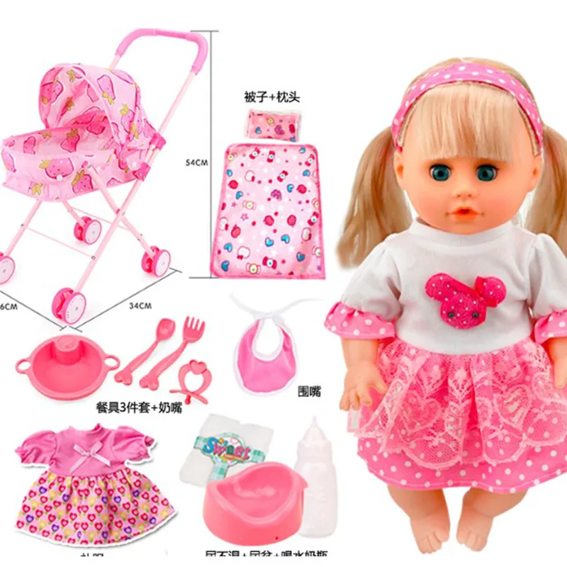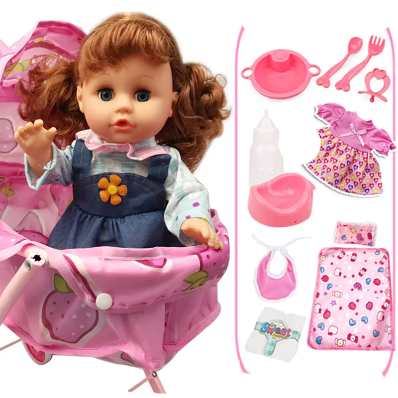 BEST QUALITY Pink Trolley toy with talking girl reborn baby vinyl dolls toys for children gift 32cm baby Strolle
