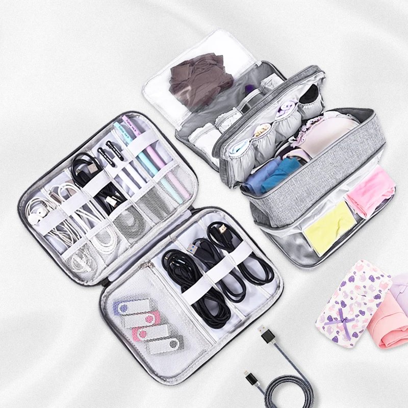 2pcs/set Cable Organizer Bag Charger Wire Electronic Case Portable Bra Underwear Pouch Drawer Close
