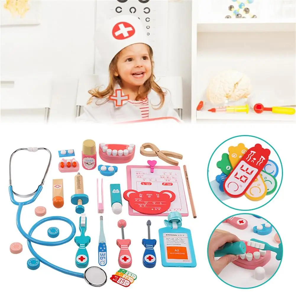 ORIGINAL 22PCS Kids Doctor Kit With Electronic Stethoscope Doctor Role-play Pretend Play Toys For Boys And G