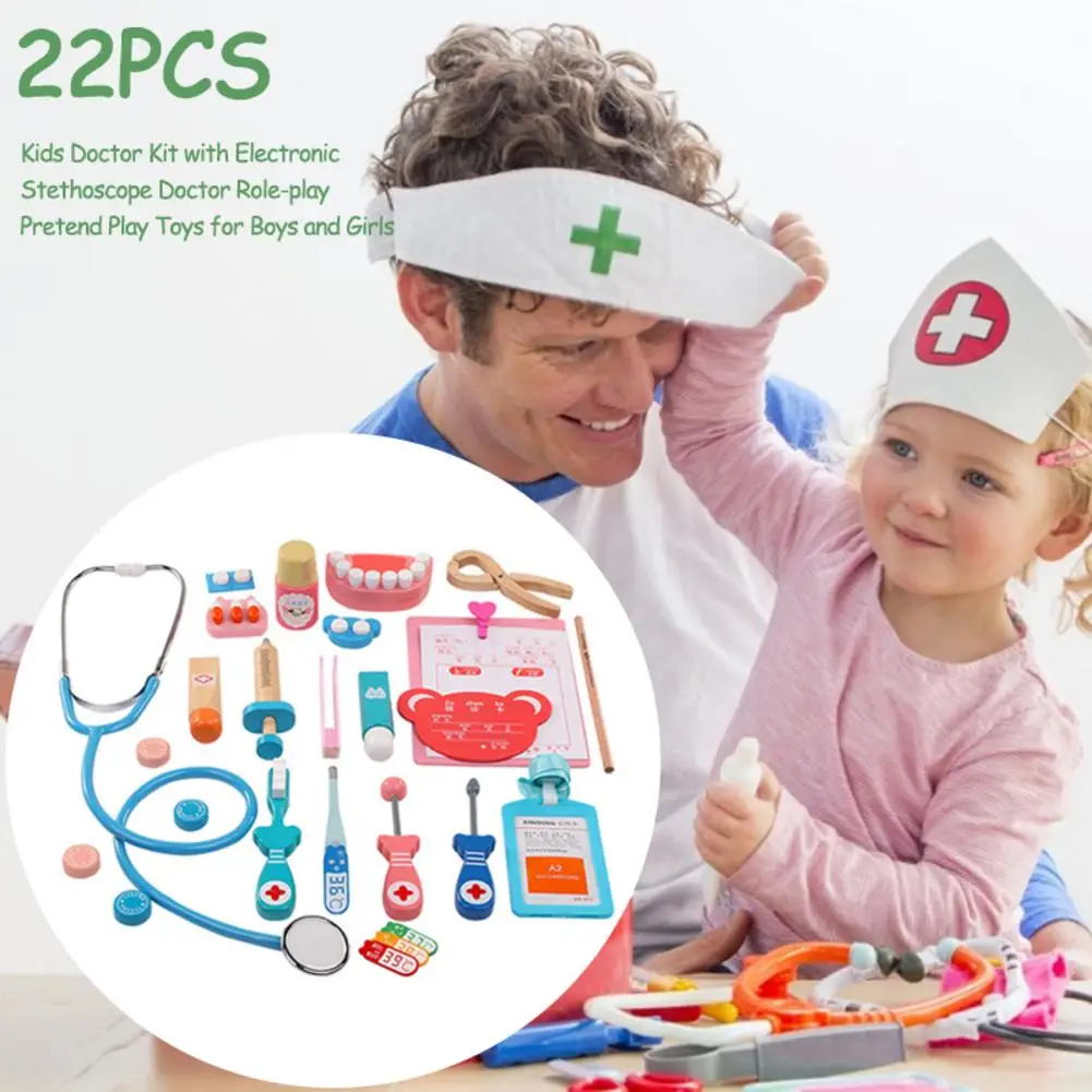 22PCS Kids Doctor Kit With Electronic Stethoscope Doctor Role-play Pretend Play Toys For Boys And G